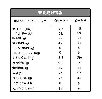 1色当たり重量 g: 1 トルティーヤ 64.5 g